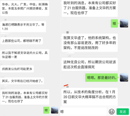1月8日消息,昨日晚间有网友向新浪期货爆料称,目前,多家期货公司将参考广州期货发布公告,且其中已有期货公司明确声明不会再使用文华财经,本来已经买好服务器的期货公司也准备停止按照文华财经给出的方案操作。