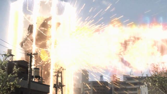 在三重斯特利姆形态下,使用泰塔斯的力量,然后一边旋转身体,一边将金黄色的能量汇聚在三重剑上,形成一个巨大的金黄色能量球,然后扔出攻击敌人。在泰迦最后,三重泰迦使用这一招直接打中了托雷基亚。