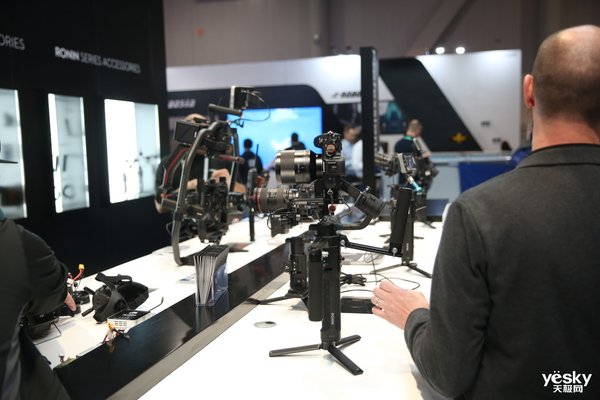 除了上面这两款非常适合普通用户的产品外,大疆在现场也展示了多款Ronin系列的专业级产品,看起来就十分的高端,这些稳定器为相机的拍摄运镜提供了可靠的稳定性,当然对于普通用户来说这些产品一般是用不到的。