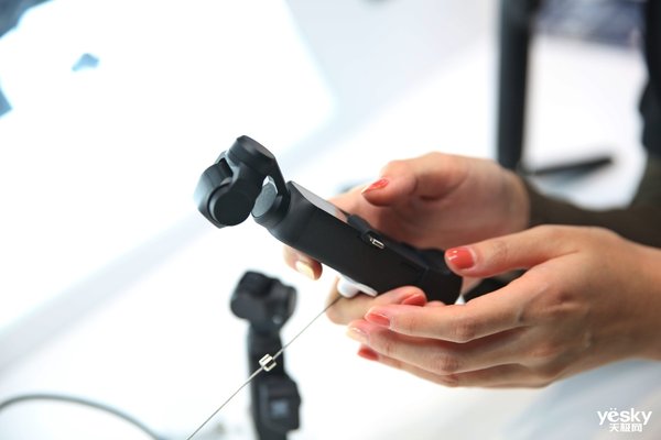 在现场我们还看到了灵眸Osmo Pocket,本次CES2020展会我们也使用了这款设备进行视频的拍摄。Osmo Pocket的重量仅有116g,尺寸为 121.9×36.9×22.75 mm,放置和携带都非常方便。它搭载了三轴机械增稳云台 ,根据相机姿态对画面进行整和补偿搭载了。相机方面,它采用了1/2.3英寸1200万像素的图像传感器,1.55μm像素面积,F2.0大光圈,支持4K 60帧 100Mbps的视频录制。电池容量875 mAh,续航时间达到140分钟。