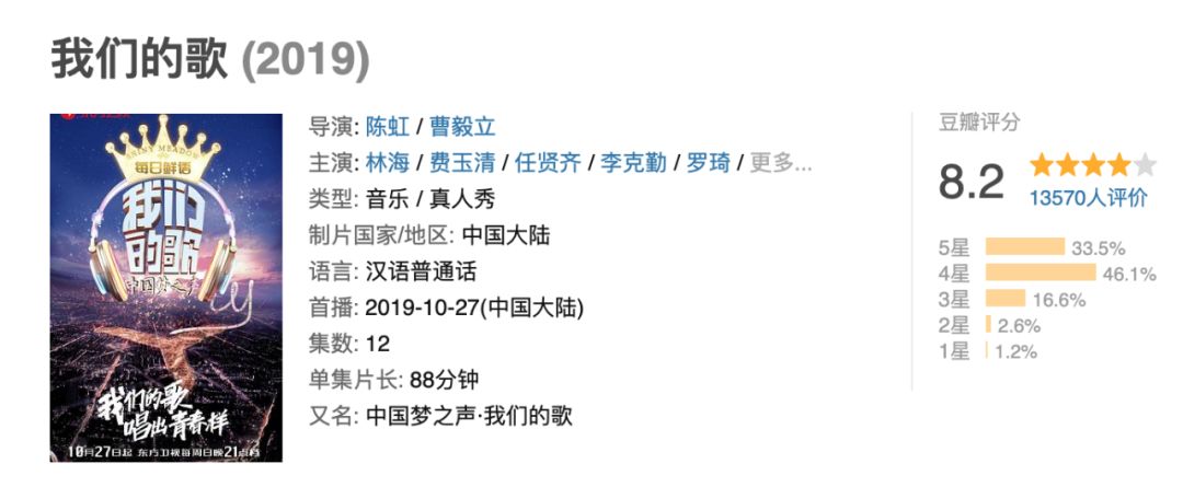 虽然是两两搭档式的歌唱比赛,但一直在组cp的嘉宾们非常和谐,粉丝之间从未发生过任何“撕x”事件。有如此高质量的音乐输出,又不靠花里胡哨的炒作来博噱头,使得节目结束后,评分都稳定在了8·2分。除了央视,其余平台的综艺要达到这个水准可不容易。