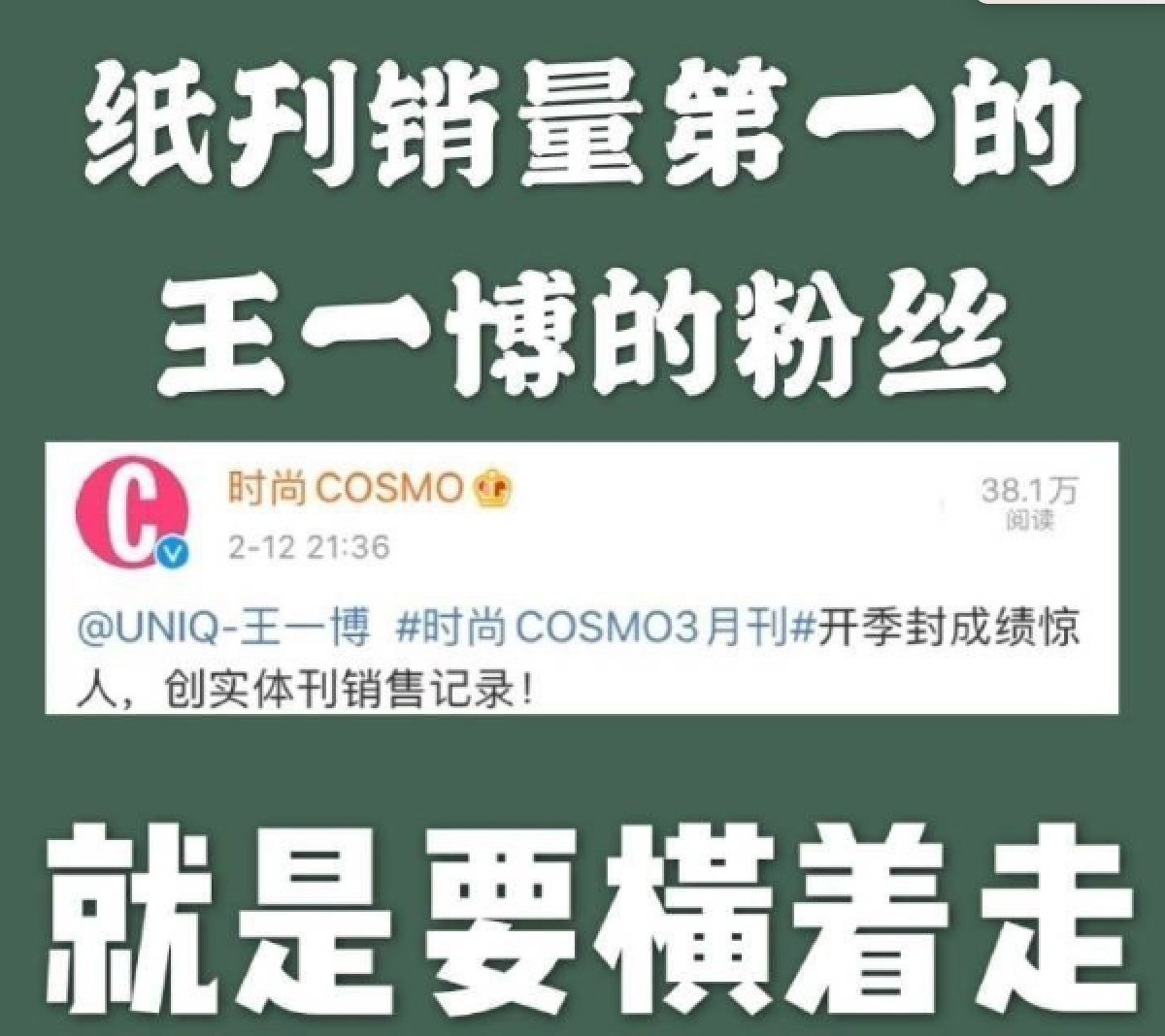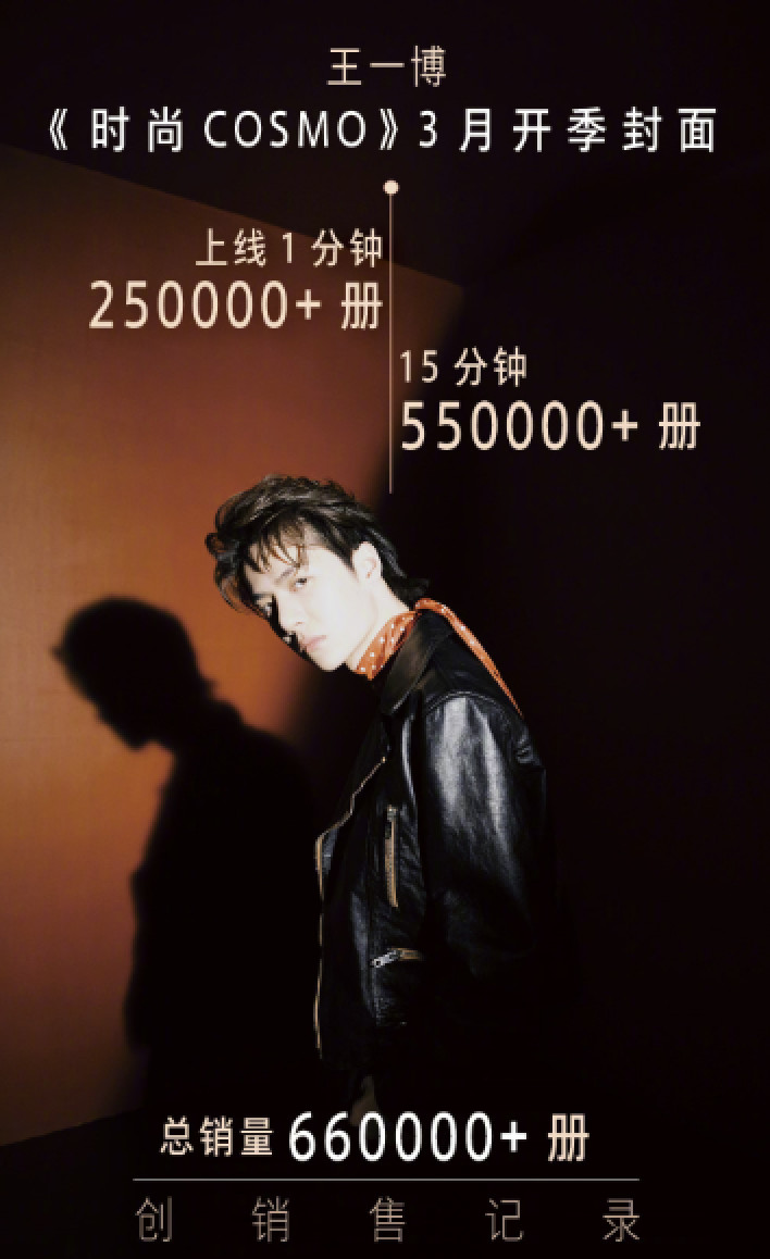 前几天,王一博拿下《时尚Cosmo》杂志的三月开季封面。粉丝为了支持爱豆的事业,在第一时间对杂志进行了抢购,杂志销售额也从1314万飙升至2500万,一度把销售平台抢到崩溃。
