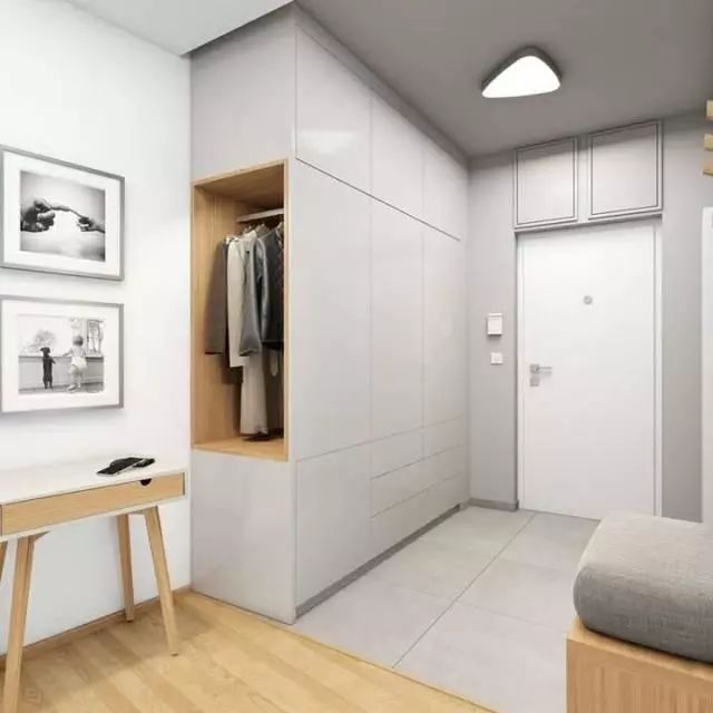玄关空间在大部分家庭中都是作为收纳、装饰所在的地方,其实它还可以承担另一个作用,那就是改造成衣帽间,我们一进门就能换上舒适的居家服,出门前也能搭配最满意的衣服,整理仪容,所以,玄关改造衣帽间,可行!