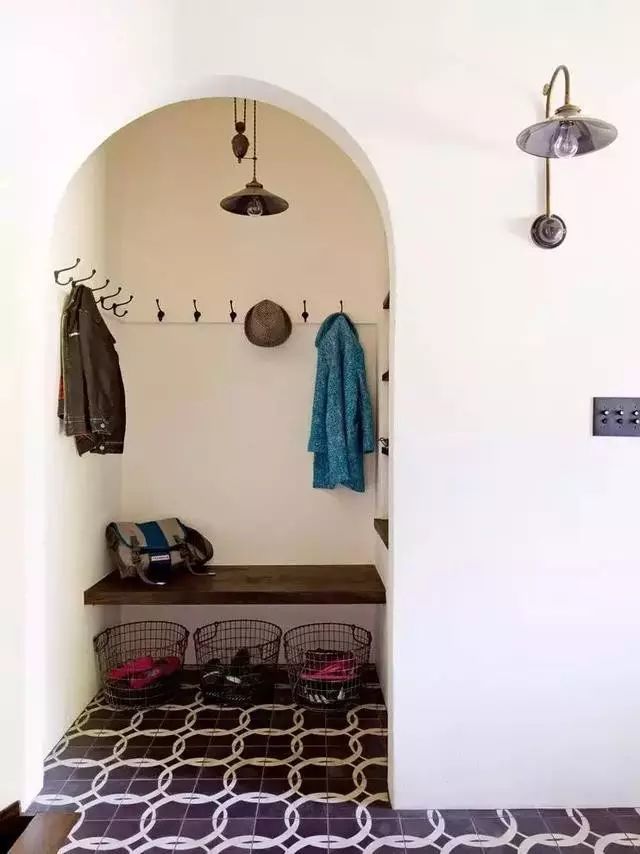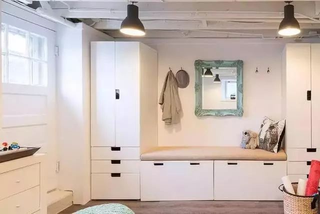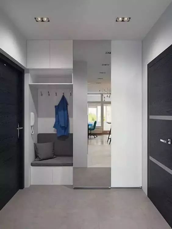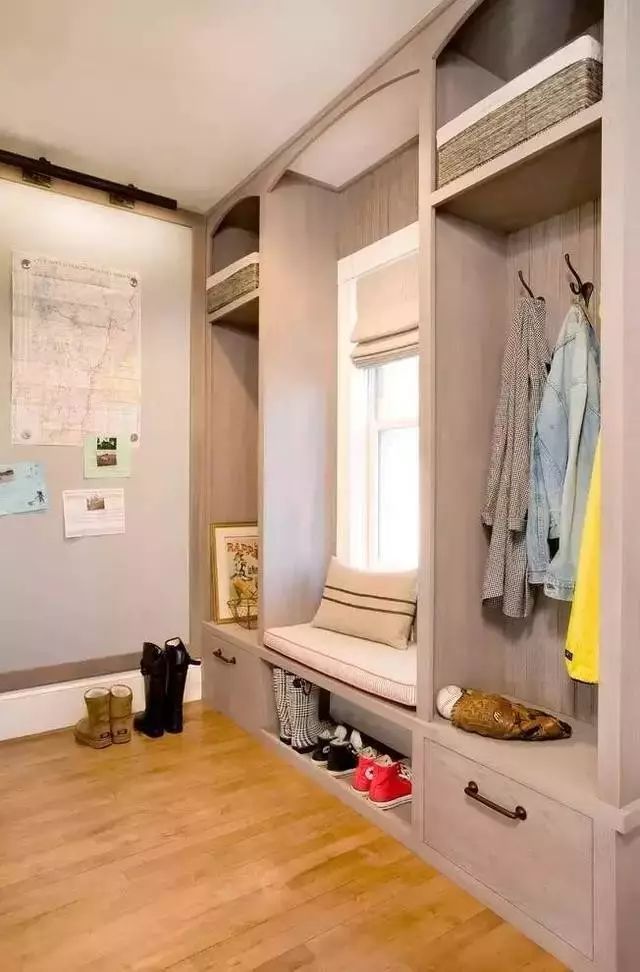 哪怕只是一面小镜子也不错~玄关衣帽间的收纳设计也要做好,换鞋凳、摆放衣服的地方一定都不能少。