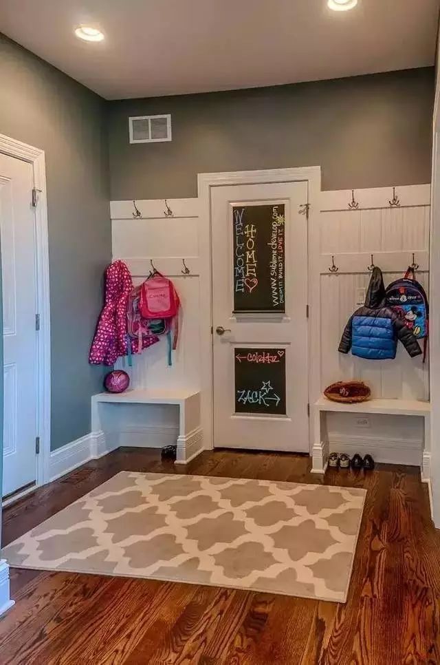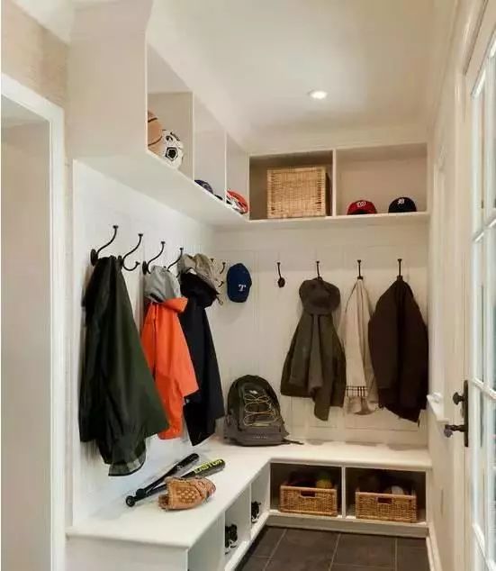 我们可以把平时要穿出门的衣服和需要带的东西提前放在玄关的衣帽间处,这样出门前就不会落下东西了。