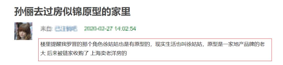 剧里的房似锦原型目前是某房产中介的大区经理,为了更贴近这个人物,在剧开拍时,孙俪还曾多次去她家,与她交流。