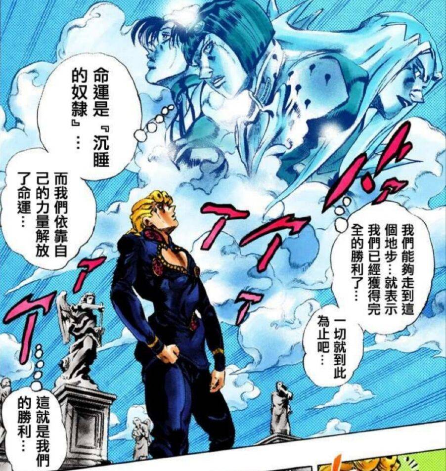 我们并不能指责福葛没有觉悟,只能说福葛就是一个保持理性的正常人,他做了大多数人都会做的选择,而布加拉提等人就是一群“正确的傻瓜”。事实上就算主角团最终打败了老板,他们也损失惨重,失去了布加拉提、阿帕基、纳兰迦三人,除了布姐是注定会死的之外,茶哥和小飞机都是反抗命运的牺牲品(滚石篇)。