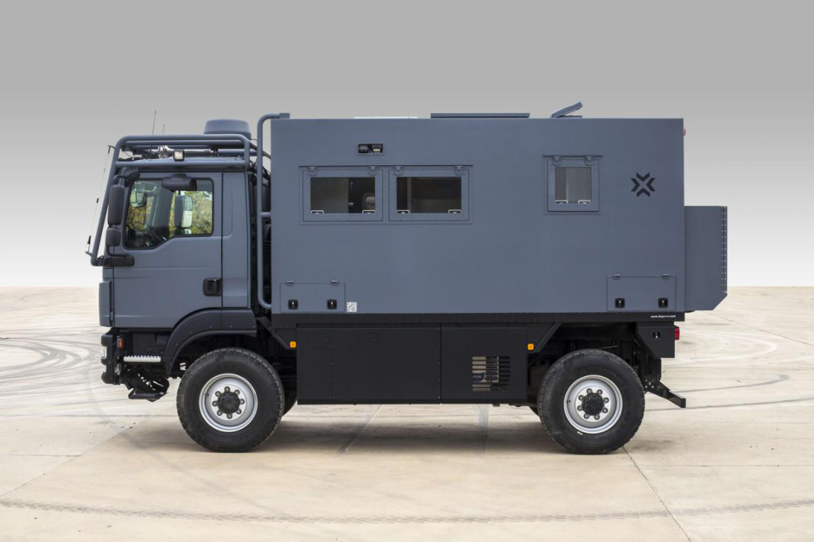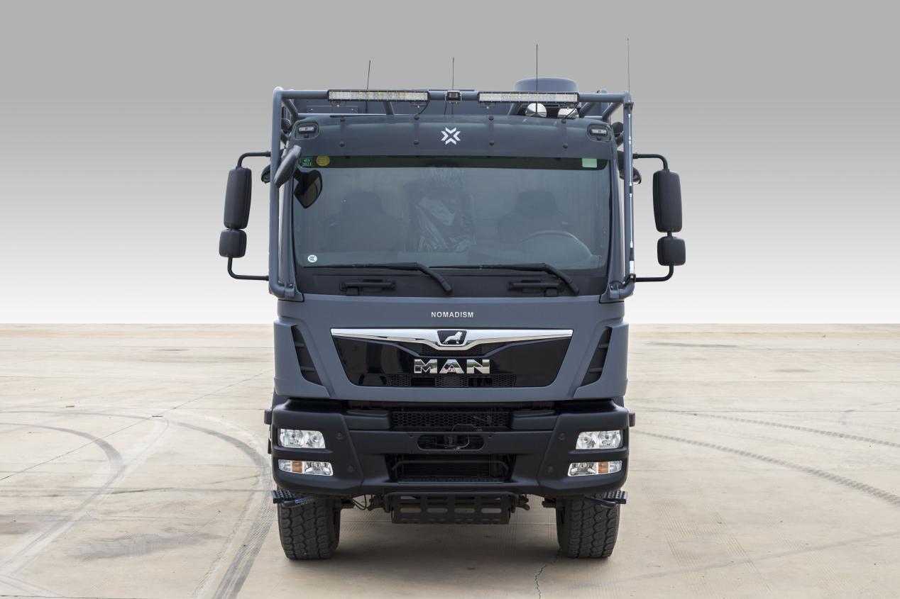 诺马迪森这款全地形豪华越野房车,采用德国进口的MAN TGM13.290BL 4X4底盘改装,搭载的是一款290PS、欧六(国五)排放标准的柴油发动机,匹配12速越野模式变速箱,峰值扭矩到了1150N.M。“穿越者M”全时四驱,整车带有3把锁(1把轴间,2把轮间),使其有强悍的越野能力,该车大核载人数为3人。车辆5995×2445×3450(mm)的尺寸,驾驶者有C1驾照就可以开车上路,所以车友们不用担心要升驾照。