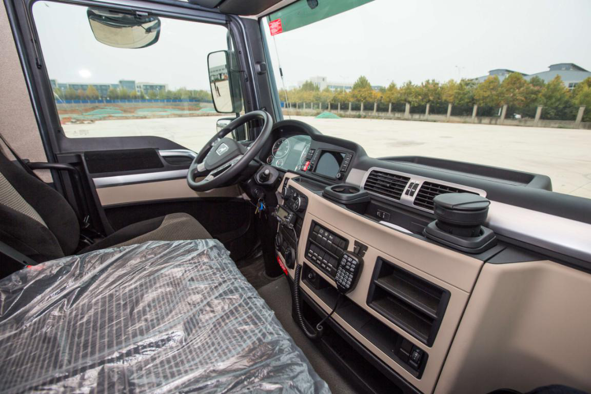 诺马迪森“穿越者M”的驾驶室内可乘坐3人,正副驾驶座椅均为空气悬挂设计,还带有通风加热功能,实现用户在越野路段的舒适性。中控区采用米色和深灰色线条搭配,配备4辐式多功能方向盘,带有定速巡航功能。