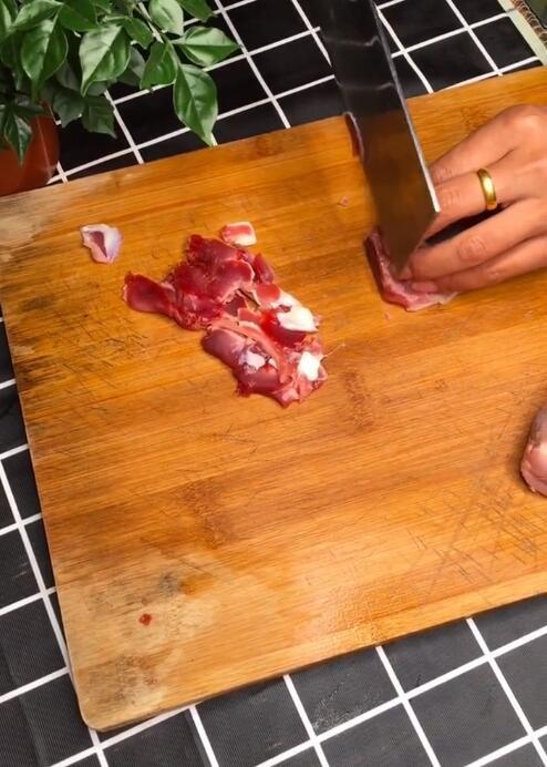 2、鸡胗本身就是很硬的食材,一定要切得尽量薄些,容易进味,口感会更脆爽。