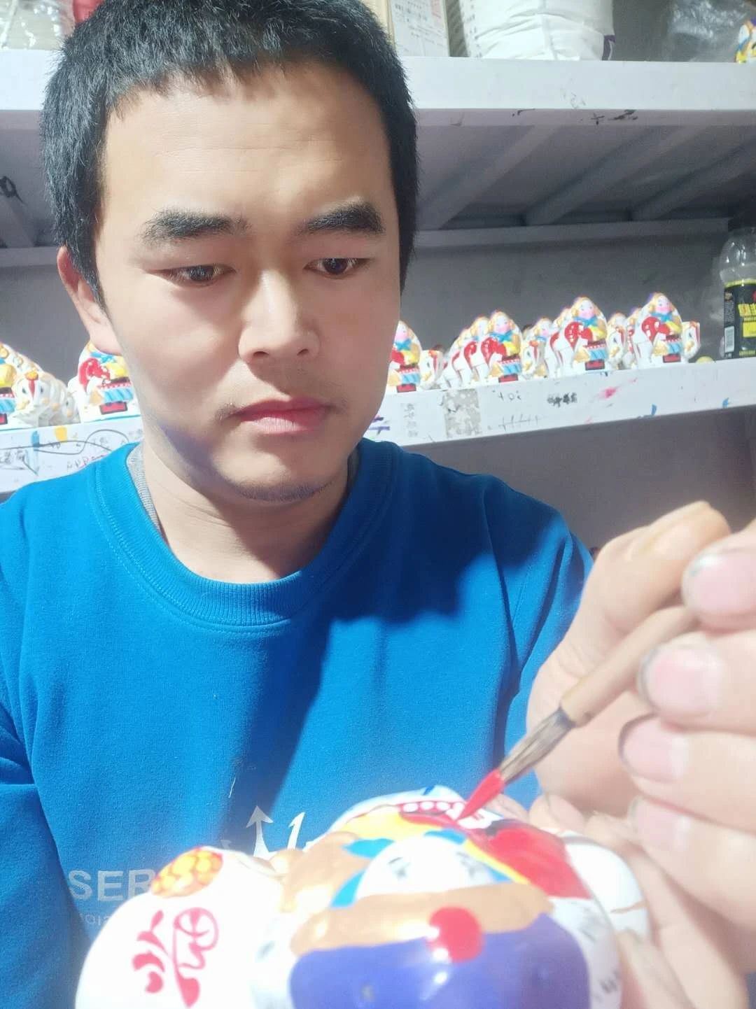 尹强,北京兔儿爷传承人,中国民间艺术大师,从事北京兔儿爷泥塑技艺制作10余年,在2009年,成立了北京福兔泥塑工作室。
