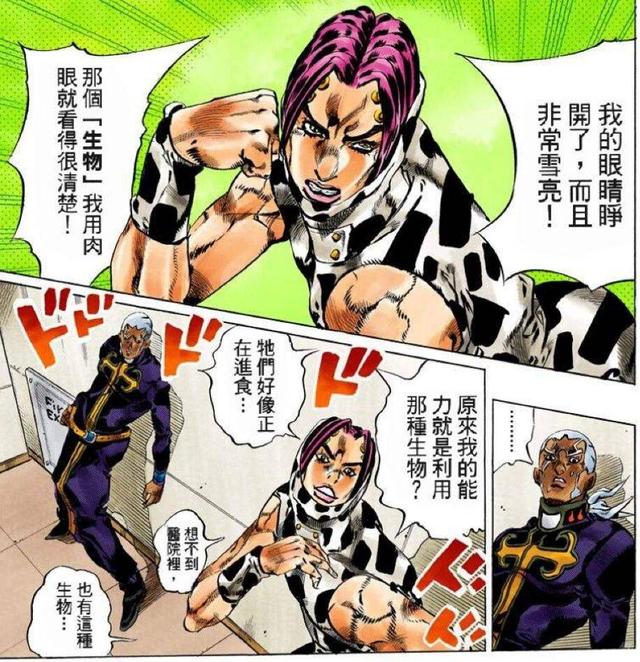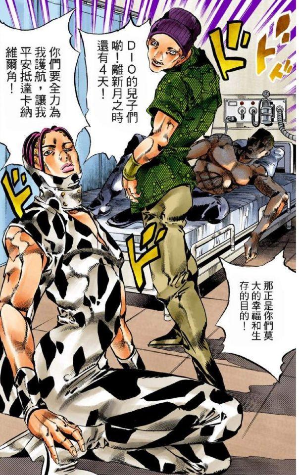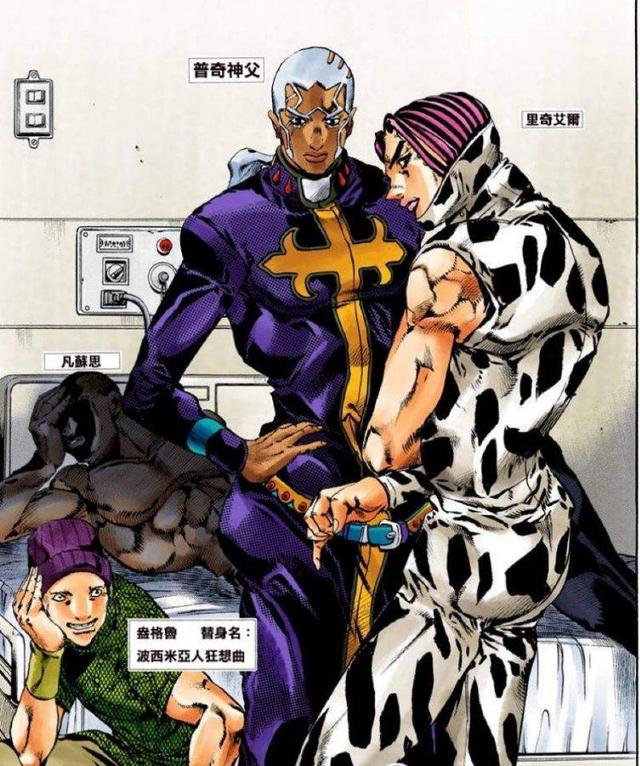 至于天国计划的具体内容,独乐在此就不赘述了。虽然DIO至死都没能实现这个愿望,但是吸收了绿色婴儿的神父,却将DIO的子嗣引召而来,企图让他们成为自己走向天堂的助力。神父一共吸引了DIO的四个儿子,除了乔鲁诺一直没有现身外(根据漫画描述,他可能已经抵达佛罗里达某处),其余三人都已出场并展示过自身的替身能力,然而他们作为DIO的儿子,并非都与DIO相像,至于谁和父亲DIO的相似度最高,对此独乐就大致分析并谈一下自己的看法。