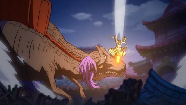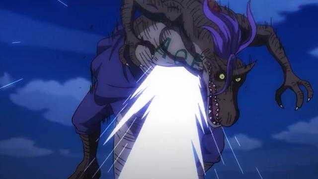 百兽海贼团凌空六子之一的佩吉万,就是动物系·龙龙果实·古代种棘背龙形态。棘背龙是肉食性恐龙,因而食用者的凶暴度会增加。佩吉万变成兽型的棘背龙,大闹都城,还和山治展开了战斗。