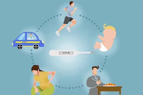 如果超出了正常的体温范围,体温偏高,大家也别慌,先看看是否有以下几种情况:体温会随着气温变化而变化,如果你在开暖气的车内,体温就会稍有升高,而在低温环境下,就会稍有降低;早上体温处于低谷、下午接近傍晚处于高点,峰值差距约在0.5度左右;运动和进餐后,体温也会略升高;婴幼儿因代谢率高,体温通常要高于成人;还有女性在排卵期和妊娠期的体温也会稍有升高。