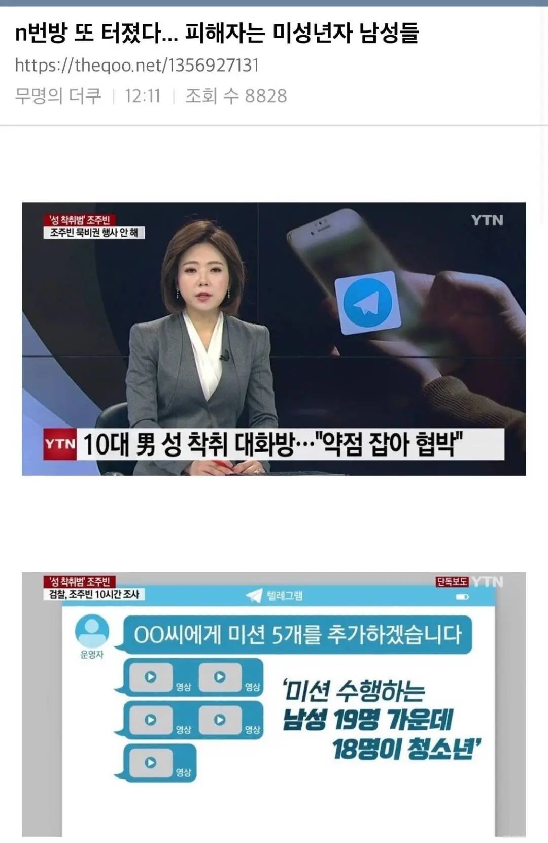 韩国媒体报道N号房事件中出现未成年男性受害者