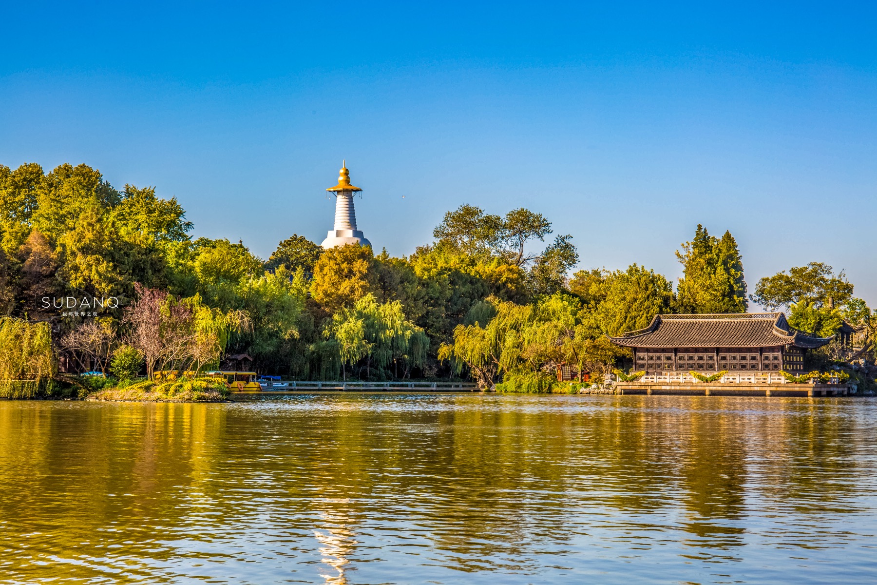 除了泛舟赏湖,也不可错过湖畔漫步,赏湖岸花柳与楼台,诸多名园胜迹散落在窈窕曲折的一湖碧水两岸,它们融南秀北雄,却更显瘦西湖的独有的那一份清瘦神韵。