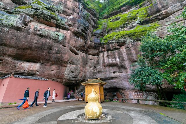 这处石洞被称作为一天门,是丹霞地貌山体自然形成的一个石洞,远远看去像是巨大的象鼻,所以被称作“象鼻岩”。象鼻岩据说是真武大帝为开辟山道,在岩石上一脚踹出的洞口,而那块被踹飞的石头掉落黄山成了飞来石。