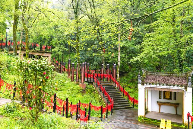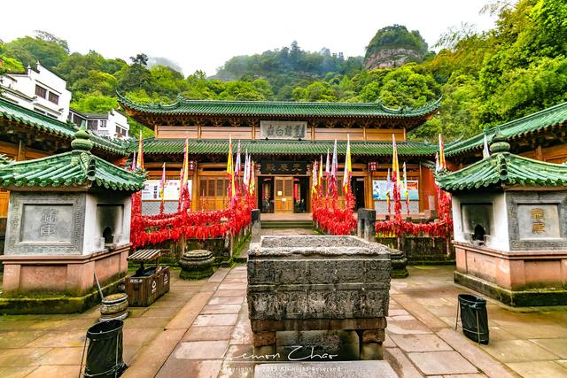 继续前行便到达了二天门。穿过二天门是一个焚香炉,两边的树上挂满了祈福的红丝带。在这里有个悬崖口可以看到对面的月华街,此时的云雾正在升腾而上,云烟袅袅,不时传来几声鸟鸣,似有一种空谷幽幽,得道飞升之感。