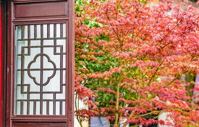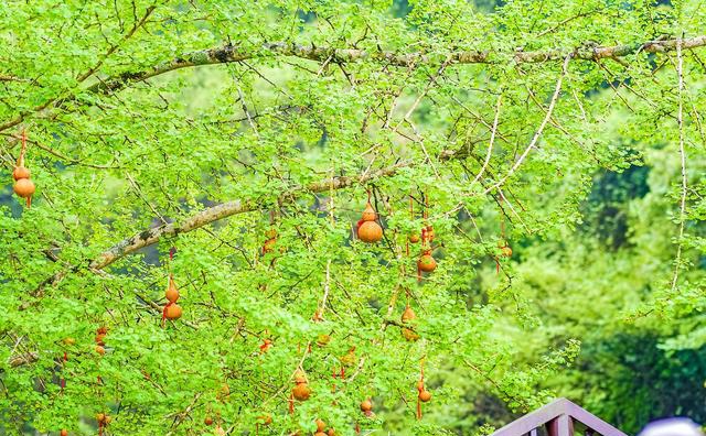 树枝上密密麻麻地挂着这里特有的葫芦,窗外的枫树叶红了,颇有几分空山新雨后,天气晚来秋之感。