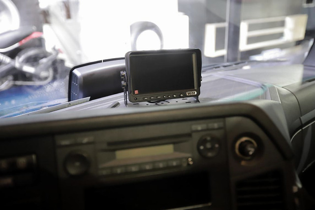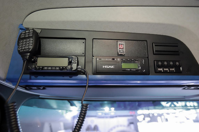 “征途者B”配备日本进口的双电台,方便前后舱人员沟通或遇到其他困难时可及用电台时取得方式。中控台上方的高清倒车影像,配合360°的监控系统,再加上驾驶室右侧防滚架安装的防盲点摄像头,倒车无死角,把安全看得重要。