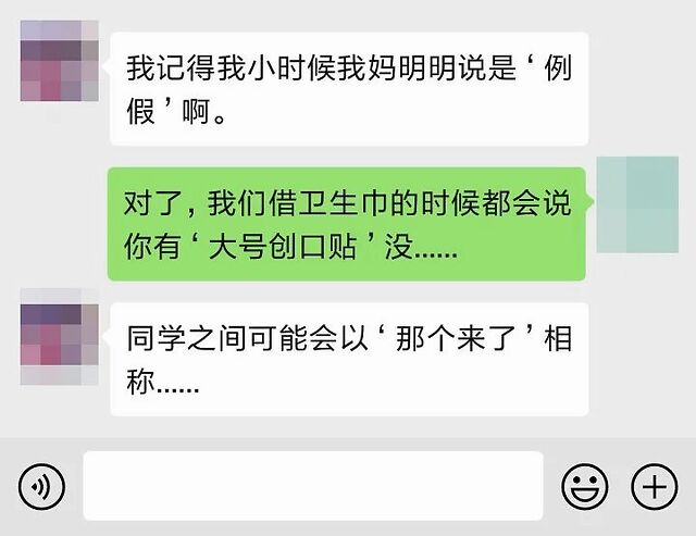 不过,年轻一辈的女孩子也有彰显自己创造力的地方,除了那些妈妈辈们传下来的婉辞,类似于“血崩”“大邦迪”(卫生巾)这样的词汇也逐渐出现。