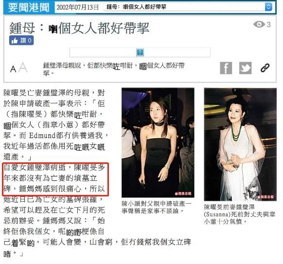 同样在3月份,章小蕙当年的出轨对象陈曜旻去世,这个消息再度让章小蕙和陈曜旻当年的感情被重新翻出热议。不过小8今天要聊的,不是他们俩的感情纠葛,而是他们感情中的受害者——陈曜旻的妻子钟璧泽。