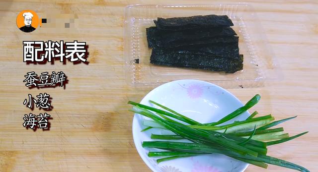 4、先把剥好的新鲜蚕豆洗干净,小葱切末,海苔切丁