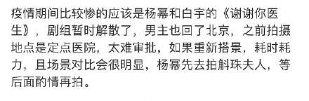 据悉,杨幂和白宇主演的《谢谢你医生》原本也在上海拍摄,但剧组目前暂时解散,所以杨幂现身上海并非工作原因。