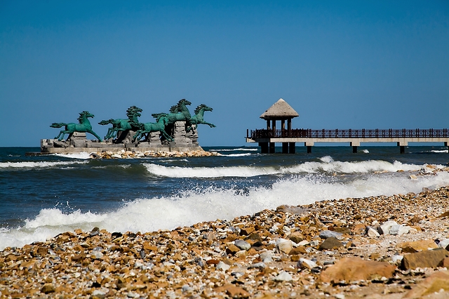 金沙滩度假区绵延十几公里的沙滩,金黄细软。温润的海风,轻轻吹拂。光着脚丫,感受大地的温柔,远望海天一色的壮丽美景。到张裕酒文化博物馆,可以看到百年地下大酒窖,体会葡萄酒业的历史香韵。