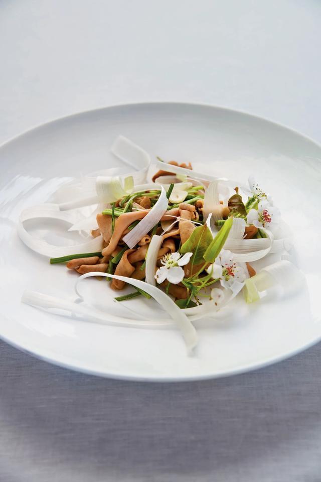 山东菜里也管配料叫“俏头”。意是给菜肴增其色,美其味,为的是绚烂多彩。“芫爆”菜是以芫荽为俏头,辅以葱丝;调味为盐、胡椒、米醋、香油。比如“鸿宾楼”和“烤肉季”的“芫爆散丹”。很多山东菜馆都有“芫爆鱿鱼”;汉民馆子还有“芫爆肚仁”。最值得说的是“汤爆双脆”:取鸡胗去胗皮,胗仁切菊花花刀,猪肚仁取肚仁切十字花刀。以清汤调鲜味,开烫,浇爆之,再点胡椒、米醋、香油,上撒芫荽末、眉毛葱,佐卤虾油。北京烤鸭店有“芫爆鸭肠”,鸭肠以盐碱水涤洗洁净,以芫荽葱姜丝蒜片、调香油、料酒、胡椒、米醋爆炒,鸭肠脆嫩,味道绝佳。每每这道菜会提前卖断货,有些老顾客都和店经理打招呼,预定招牌菜。