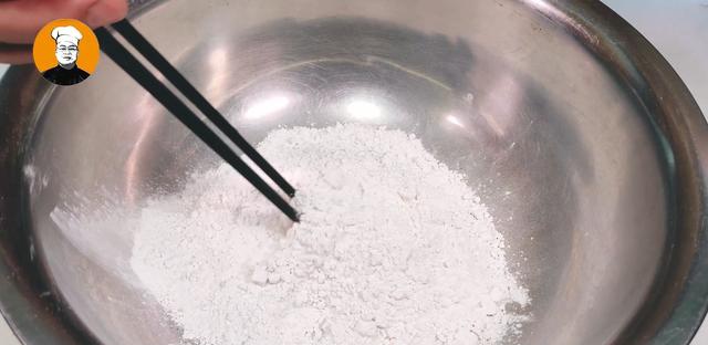 4、先把红薯淀粉用凉水拌开,搅拌到厚薄相当的红薯粉水就可以了。准备一个模具,再模具底部跟周围擦上一层食用油。山芋粉容易沉淀,每次做之前把它充分搅拌均匀。把山芋粉水倒在模具当中,不要太厚也不要太薄