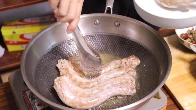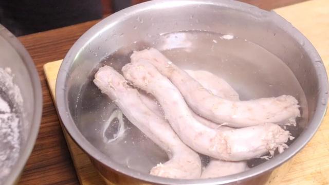 2、鸭脖焯水后要煎制一下,这样的话,鸭脖肉质更加紧实,口感更好。