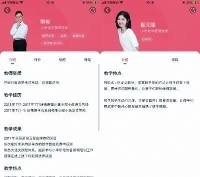 同样,知名在线教育平台“掌门一对一”的教师介绍也存在着相似的问题。在众多经过“美化”的教师介绍中,常常看不到教师资格证明的身影。