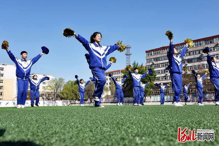 4月23日,张家口市宣化第二中学高三一班的学生在上体育课。 张家口市宣化第二中学供图