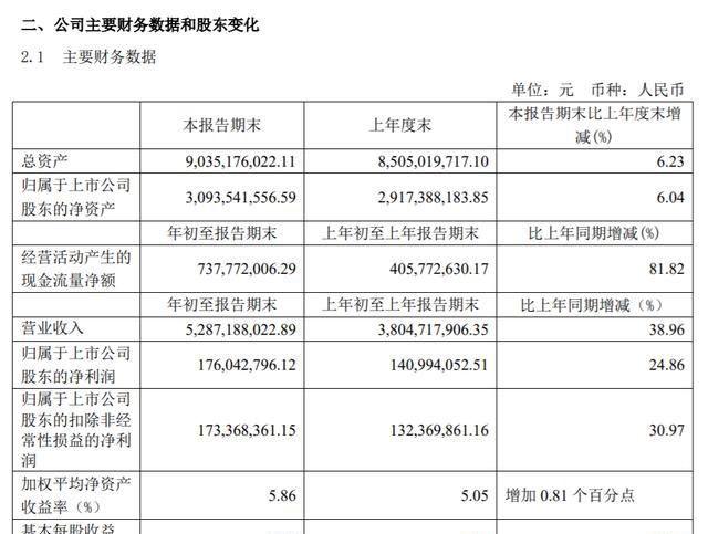 报告期内,公司营收达到152.64亿元,同比增长19.9%;实现归属于上市公司股东净利润4.58亿元,同比增长6.43%。