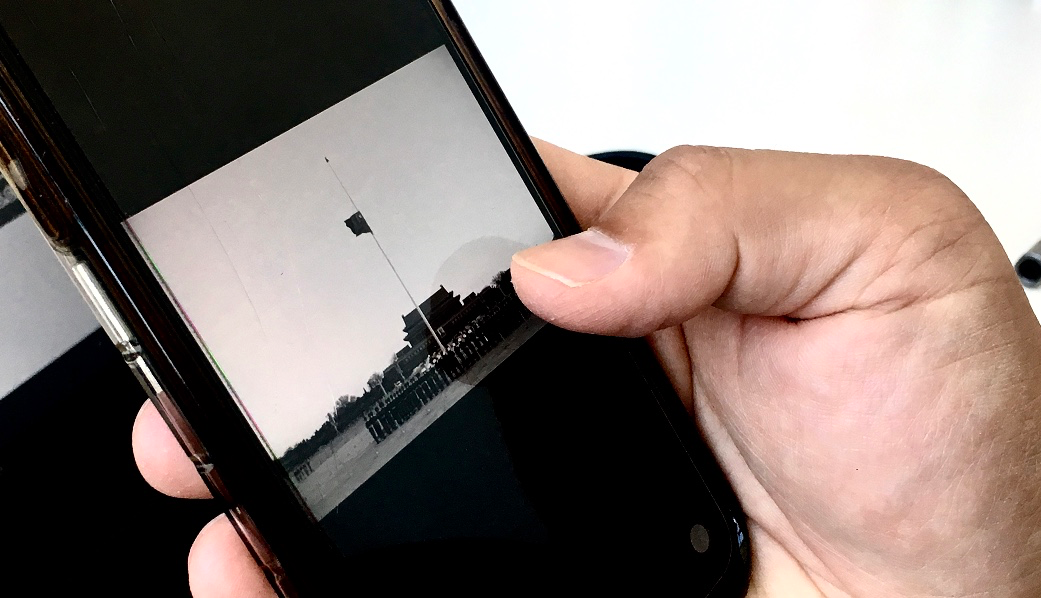 2020年5月12日,读者默默翻看降半旗照片。摄影/徐上杰