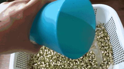 过不了几天再掀开看,你就有满满一大盆的豆芽菜了!