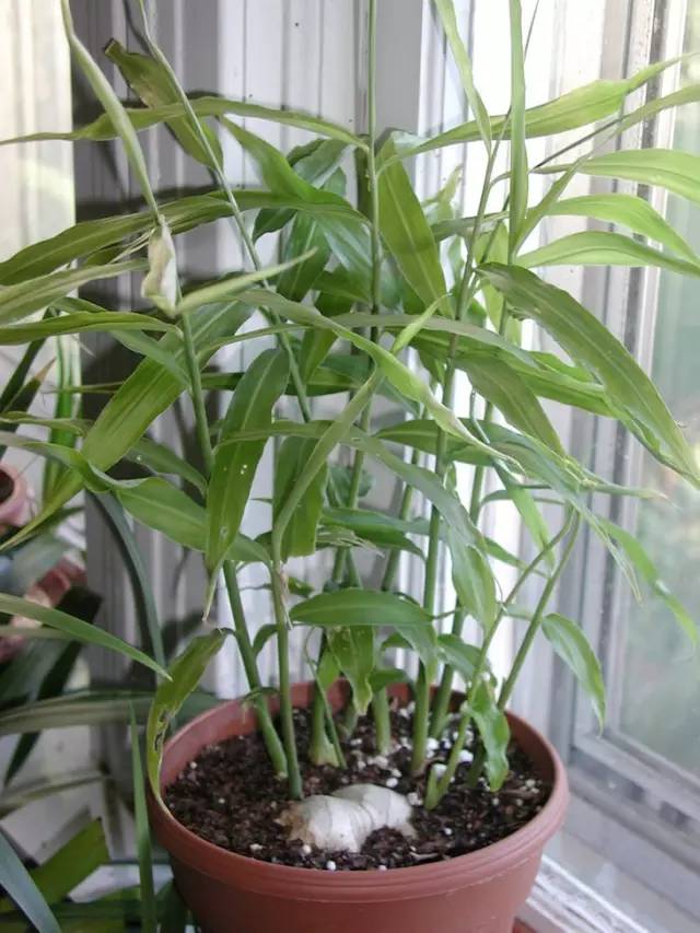 将发芽的生姜种植在花盆里面,用土盖住一大半姜身,一次性浇水浇透,到芽冒出来前都不用再浇。