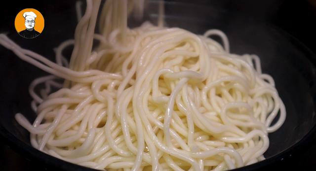 5、再在葱油中放入生抽、老抽、白糖,搅匀把白糖熬化,然后关火晾凉备用。锅中烧上开水放入面条,大火烧开再放入凉水,这样重复两次。再把面条装入碗中