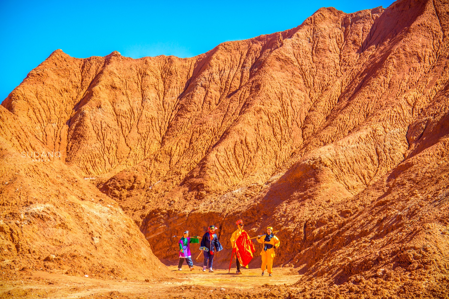 蔚蓝的天空,寂静的山谷,大自然所赋予的震撼景观使得吴承恩笔下的神话故事更具有魅力。对于火云谷的探秘像是一场冒险,它有两条游览路线,一条是徒步穿越,一条是自驾越野。自驾越野,是火云谷之旅最不能错过的公路穿越。