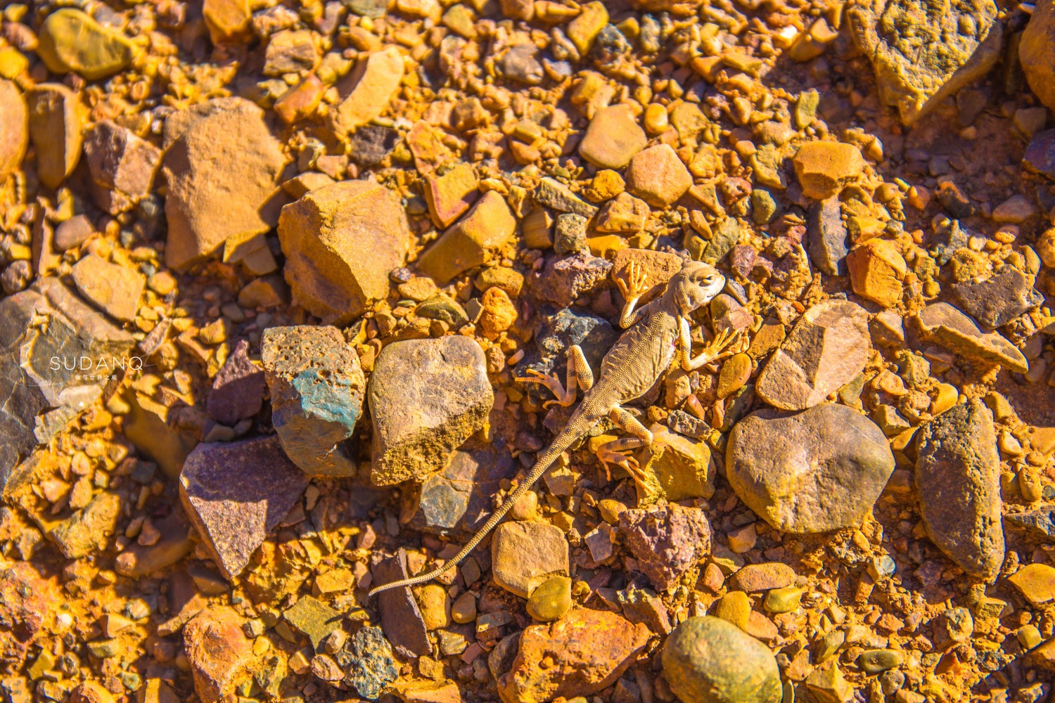 在这个“寸草不生”的地方,依旧是有生灵。类似于这样的蜥蜴,在火云谷比较常见。它的颜色与这里的山色融为一体,有朋友称这可能是变色龙。