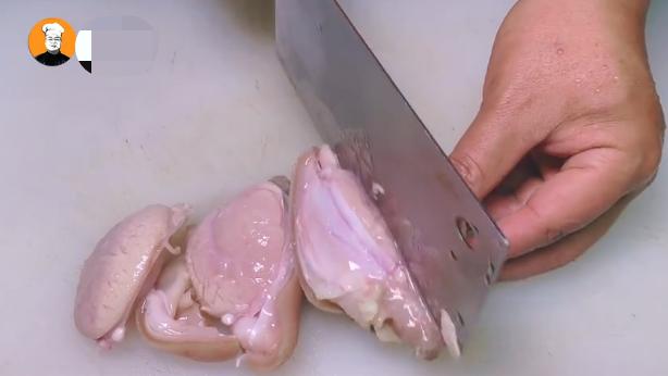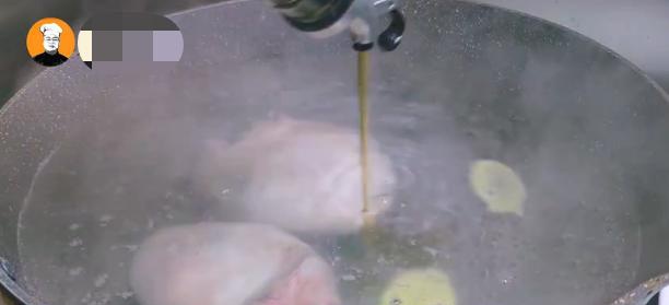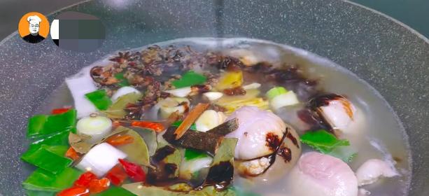5、锅开后撇去浮沫,再烧5分钟,然后捞出羊蛋,用刮刀刮去羊蛋上残余的羊毛,再把羊蛋切成四瓣。