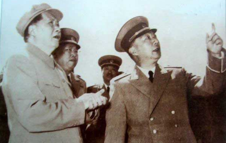 秘书和工作人员还想建议挂飞行表演那一张,觉得画面上有主席和几位老帅,而且聂帅正向主席汇报情况,主席仰望天空,大家的神态表情都很好。