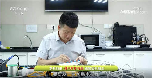 真正防水的插排被发明出来了,中科电工加强版防水安全插排很快受到了CCTV科教频道《我爱发明》节目的关注。