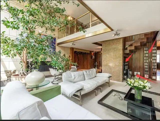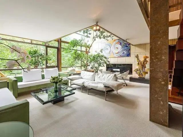 客厅最引人注目的是绿色的植被,从一楼延伸到二楼,给空间带来生命力,侧面黑框架构的玻璃带来采光和通风,窗台上可以收纳,白色布艺沙发要比其他沙发要宽,这个可以躺在在上面看电视等等,特别的舒适。