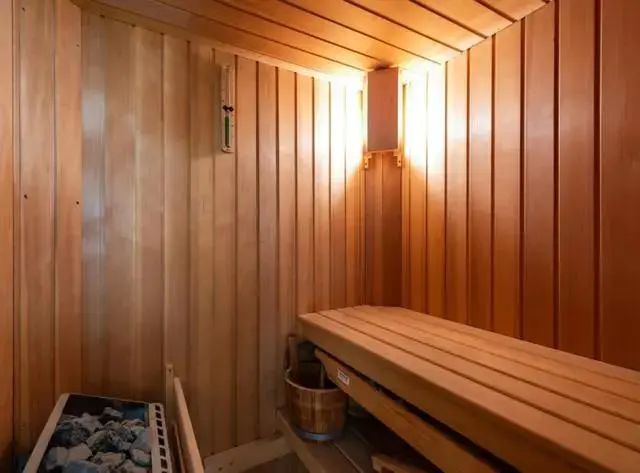 除了卫生间,家里还有一个小型的桑拿房,全木质,还有炉碳,洗完澡来蒸一下,太惬意!