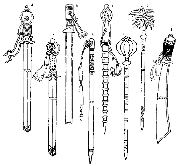 ▲可以看到宋代鞭锏类兵器的手绳孔大多手柄后端