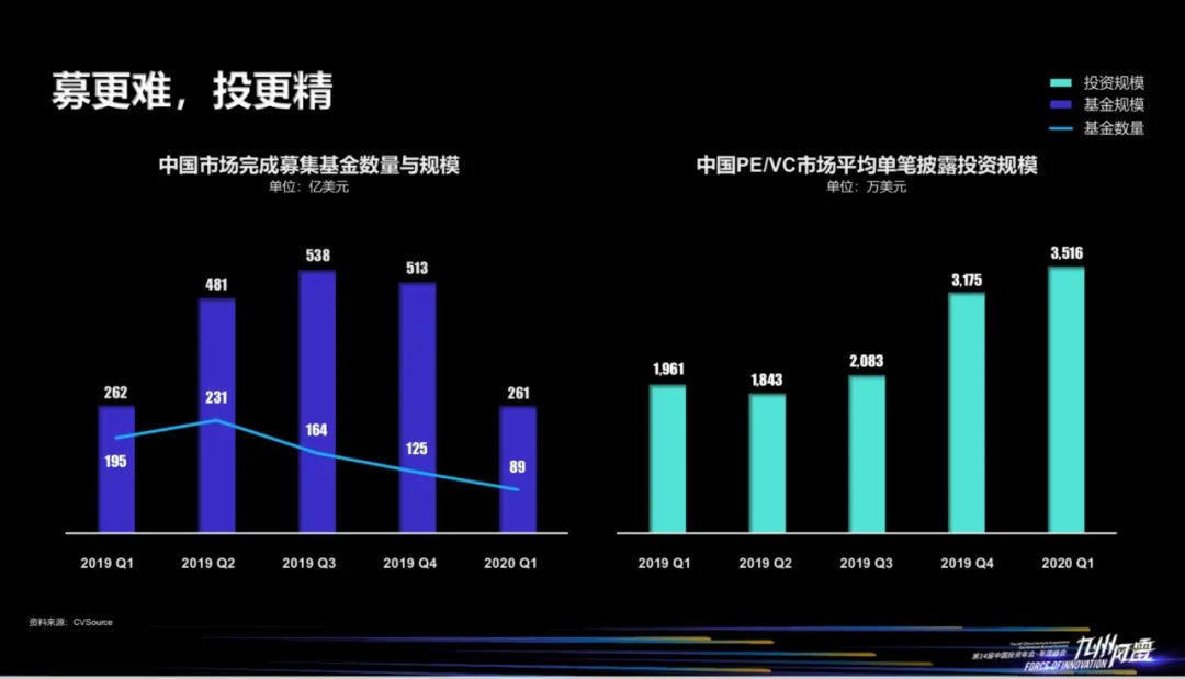 从投资来看,机构出手变得越来越精准,越来越谨慎。从2020年Q1披露的融资数据看,平均单笔投资金额达到3500万美金。