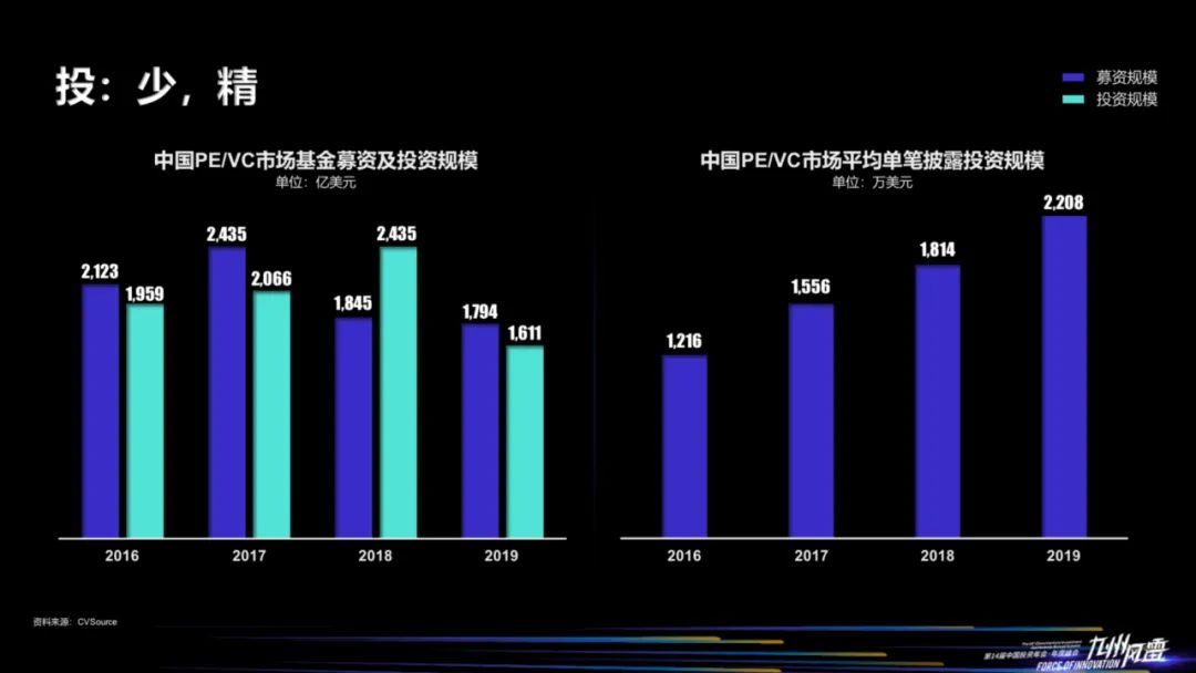 2、我们的VC/PE市场,募资困难,GP扣动扳机次数减少,单笔投资金额越来越高,退出不等同于收益。
