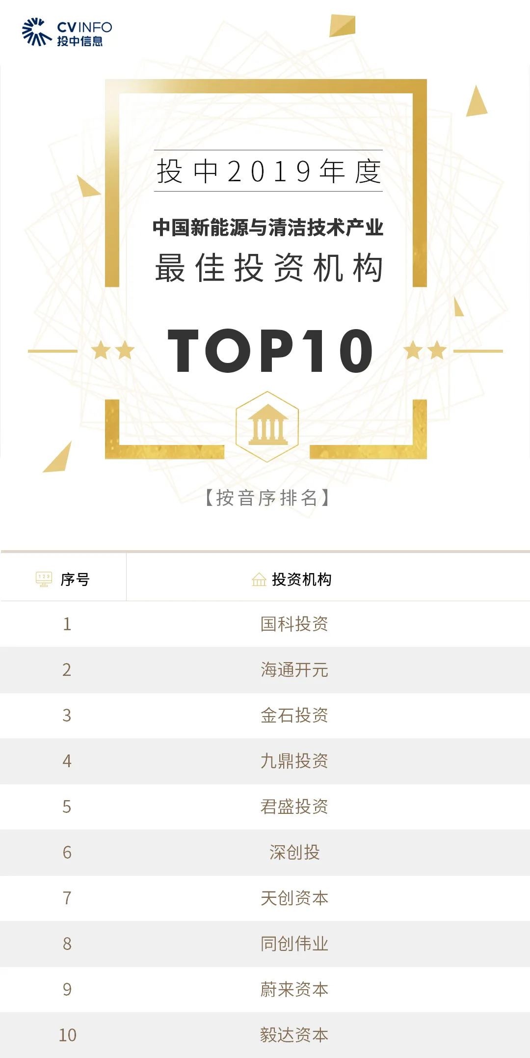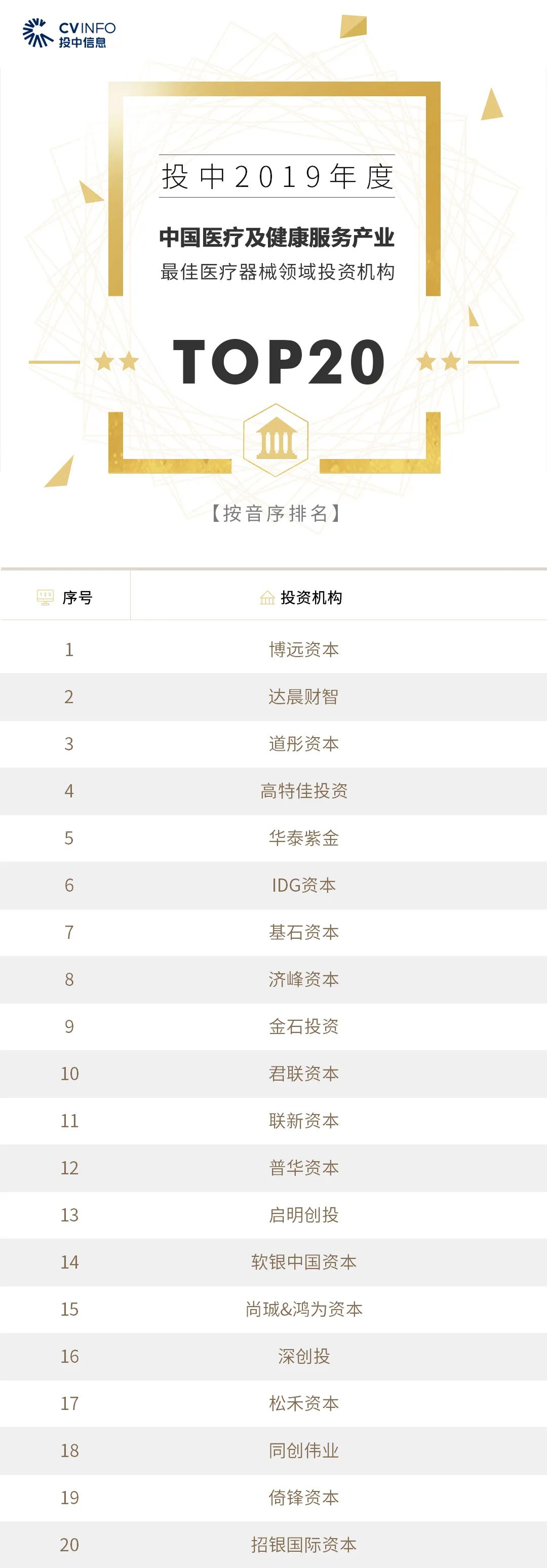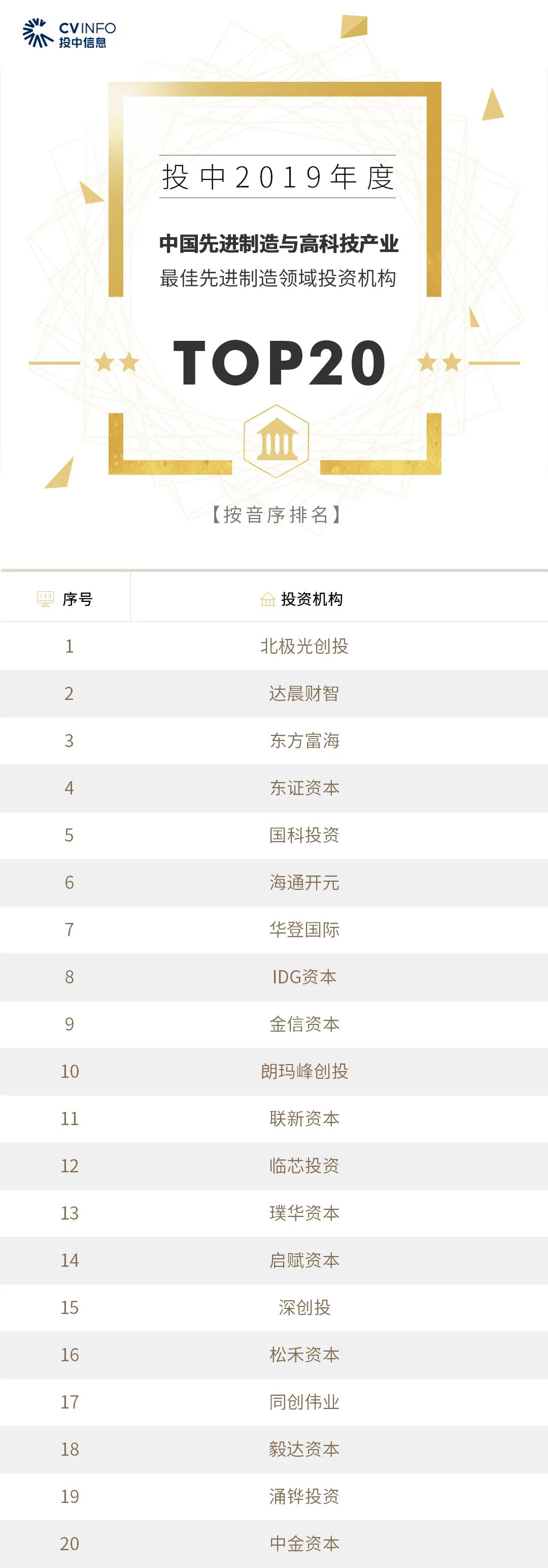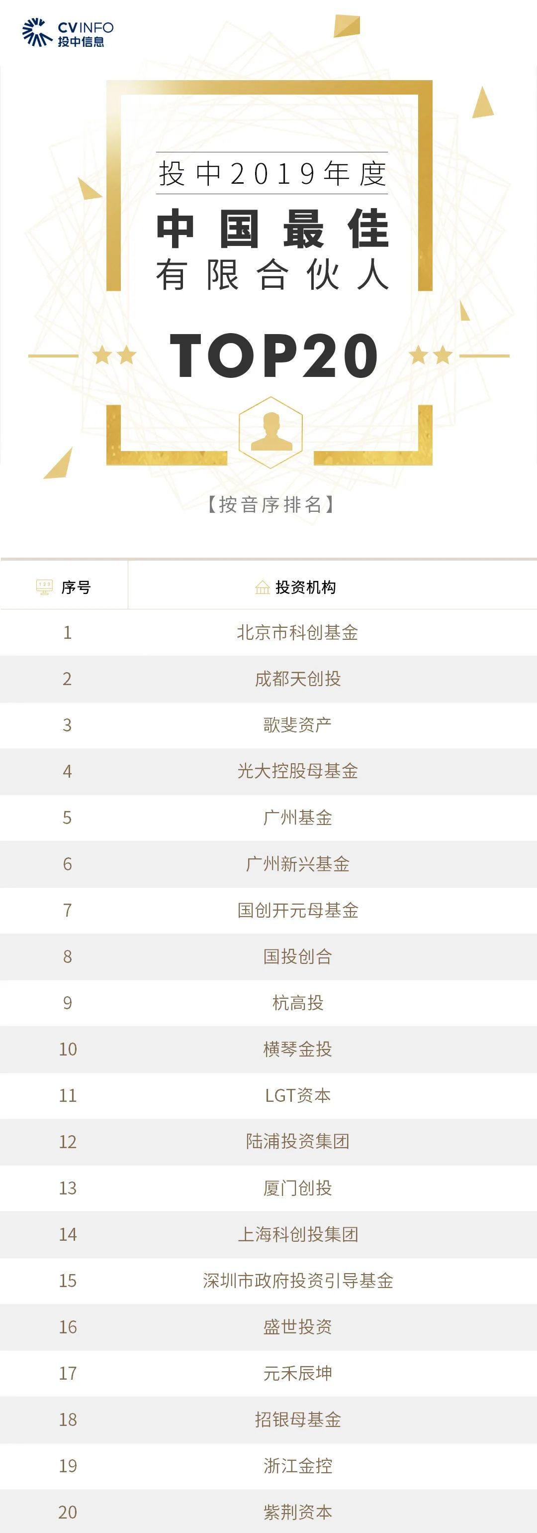本次榜单共揭晓“2019年度最佳创业投资机构”、“2019年度最佳私募股权投资机构”、“2019年度最佳早期创业投资机构”、“2019年度最佳有限合伙人”、“2019年度最佳产业投资机构”等奖项。